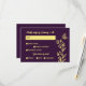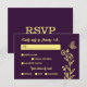 Carte de réponse unique simple mariage avec des fleurs d'or romantiques et élégantes sur arrière - plan violet POUR PLUS DE PRODUITS CORRESPONDANTS cliquez sur la collection ci-dessus ou contactez-moi.