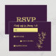 Carte de réponse unique simple mariage avec des fleurs d'or romantiques et élégantes sur arrière - plan violet POUR PLUS DE PRODUITS CORRESPONDANTS cliquez sur la collection ci-dessus ou contactez-moi.