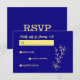 Carte de réponse unique simple mariage avec des fleurs d'or romantiques et élégantes sur l'arrière - plan bleu royal POUR PLUS DE PRODUITS CORRESPONDANTS cliquez sur la collection ci-dessus ou contactez-moi.