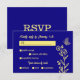 Carte de réponse unique simple mariage avec des fleurs d'or romantiques et élégantes sur l'arrière - plan bleu royal POUR PLUS DE PRODUITS CORRESPONDANTS cliquez sur la collection ci-dessus ou contactez-moi.