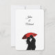 Célébrez votre amour avec ce faire-part de mariage artistique époustouflant, avec une silhouette romantique d'un couple partageant un moment intime sous un parapluie rouge. L'élégant contraste noir et blanc, associé à une touche de rouge audacieuse, crée une atmosphère intemporelle et dramatique. Parfait pour les mariages modernes, parisiens, européens et d'inspiration vintage. Personnalisez avec vos détails et donnez le ton pour une journée inoubliable !