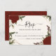 Donnez le ton de votre élégante fête avec cette carte RSVP Romantic Deep Red Rose Floral Winter Wedding, avec des roses d'aquarelle rouge et bordeaux luxuriants associés à de la verdure douce et des accents d'hiver. Parfait pour un mariage d'hiver romantique, une fête d'automne ou un événement inspiré des vacances, cette carte RSVP complète parfaitement votre papeterie mariage. Le design floral rouge profond symbolise la passion et l'amour intemporel, ce qui en fait le choix idéal pour les couples qui planifient un mariage d'hiver classique, un mariage inspiré de Noël ou une célébration d'automne romantique. Les clients peuvent facilement répondre avec leur assiduité et leurs choix de repas, vous aidant à rester organisé tout en gardant le thème cohésif. Cette carte RSVP fait partie d'une collection de mariages correspondants, y compris les invitations, les sauvegardes des dates, les programmes, les menus, les étiquettes de faveur et les cartes de remerciement, vous permettant de créer une suite de papeterie mariage fleurie transparente et luxueuse.