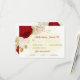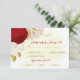 Fleurs romantiques rouge foncé et blanc avec carte de réponse mariage botanique feuille d'or avec option de choix de repas. Les détails de la parties scintillant sont simulés.