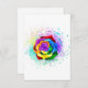 Grande rose en fleurs avec des pétales d'arc-en-ciel sur fond blanc, peinte avec des éclaboussures de peinture colorée et vive. 3d
