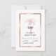 Offrez à vos invités de répondre à votre faire-part de mariage avec cette carte RSVP élégante avec script moderne et texte bleu marine, y compris un palmier artistique et un cadre en cuivre or rose métallique sur le devant de la carte. Un arrière - plan bleu de la marine qui coordonne les opérations est à l'arrière.