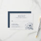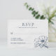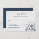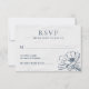 Elégante carte de mariage RSVP propose des illustrations florales bleues à la main d'art moderne et simple, dont un rose sauvage.