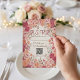 Complétez votre suite de mariage avec ce magnifique modèle de réponse RSVP coordonné, inspiré d'un thème de mariage floral aquarelle rose rouge. Des fleurs romantiques dans des tons rose blush, rose poussiéreux, rouge vin et coucher de soleil doux encadrent la mise en page, créant une atmosphère chaleureuse et accueillante qui semble tout droit sortie d'un jardin printanier vintage. Les détails floraux reflètent une esthétique de mariage rustique romantique tout en gardant la section de réponse claire et facile à suivre pour les invités.