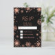 Cette carte Rsvp élégante et glamour présente des flocons de neige en parties scintillant d'or rose d'aquarelle et des étincelles sur un arrière - plan noir. Il est parfait pour une fête d'anniversaire d'hiver ou de Noël.