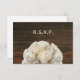 Un RSVP de mariage avec une image de roses blanches au fond sur un arrière - plan de bois d'écorce brun foncé. Personnalisez le texte avec les détails de votre occasion.