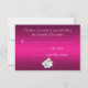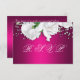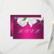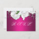 Une très jolie carte RSVP de mariage rose foncé très colorée, avec un luxueux bouquet de mariée rose blanche sur le devant, et un petit bouquet blanc sur l'autre côté de la carte de réponse.