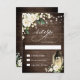 Roses blanches Carte RSVP de mariage en bois rustique.