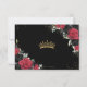 Personnalisez facilement et rapidement cette carte de réponse RSVP vibrante et fleurie pour un anniversaire de Quinceañera / Sweet 16. Cliquez simplement sur le bouton "Modifier à l'aide des outils de conception" pour modifier le texte, changer les styles et les couleurs de police. Elle présente de magnifiques fleurs de roses noires et rouges, une couronne de princesse et des accents dorés élégants. La couronne est déplaçable, redimensionnable, multipliable et amovible. Personnalisez-la pour l'adapter à votre occasion. Parfaite pour Quinceanera, Sweet 16, Bat Mitzvah, 18e anniversaire, mariage, douche de mariée et plus encore ! Créez une célébration cohérente et élégante avec les articles assortis disponibles en magasin ! (c) Somerset Fine Paperie par The Happy Cat Studio.