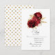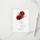 Chic rsvp de quinceañera avec des roses rouges vintage et des accents de feuille de métal doré.