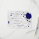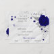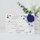 Magnifique carte rsvp botanique personnalisable avec choix de repas belle fleurs bleu royal avec feuilles gris argent contre élégante arrière - plan en marbre Les détails de la parties scintillant sont simulés