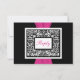 Cette carte de réponse damassée noire et blanche a un ruban imprimé rose chaud. Elle correspond à l'invitation de mariage présentée ci-dessous. Si vous avez besoin d'autres articles assortis ou si vous souhaitez une autre combinaison de couleurs, veuillez envoyer un e-mail à niteowlstudio@gmail.com avec votre demande.