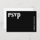 Carte rsvp de mariage moderne avec un design simple et minimal avec une typographie audacieuse en blanc sur un arrière - plan noir. Les couleurs peuvent être modifiées en n'importe quelle couleur que vous choisissez dans l'outil d'édition de conception. Cette carte rsvp de mariage contemporaine est idéale pour un mariage à thème goth ou halloween.