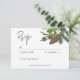 Célébrez votre amour avec la beauté sereine de l'hiver. Notre carte de réponse mariage d'inspiration nature sans choix de dîner présente un délicat bouquet d'aquarelle de pin rustique, de pinecones et de mistletoe aux baies blanches, capturant la magie tranquille de la saison. Un oiseau gris et blanc gracieux perche doucement sur le dos, ajoutant un charme boisé romantique. Fini avec une police propre et moderne, ce design apporte élégance et chaleur à votre journée spéciale. Votre photo de couple préférée orne le dos. Parfait pour un mariage d'hiver rempli d'émerveillement naturel. Créé par Simply Farmhouse Press.