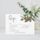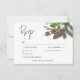 Célébrez votre amour avec la beauté sereine de l'hiver. Notre carte de réponse mariage d'inspiration nature avec choix de dîners présente un délicat bouquet d'aquarelle de pin rustique, de pinecones et de métisses aux baies blanches, capturant la magie tranquille de la saison. Un oiseau gris et blanc gracieux perche doucement sur le dos, ajoutant un charme boisé romantique. Fini avec une police propre et moderne, ce design apporte élégance et chaleur à votre journée spéciale. Votre photo de couple préférée orne le dos. Parfait pour un mariage d'hiver rempli d'émerveillement naturel. Créé par Simply Farmhouse Press.
