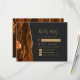 Le bord gauche de cette élégante carte d'enceinte RSVP de mariage moderne comporte une bordure d'aquarelle couleur orange brûlée et rouille ornée d'une parties scintillant en faux or. Le titre "Kindly Reply" apparaît dans un script d'écriture manuscrite de couleur or, avec le texte restant dans les polices cuivre et italique sur un arrière - plan non noir. Inclut des espaces pour que vos invités puissent commencer leur choix de trois entrées modifiables. L'envers est assorti d'une agate orange brûlée et dorée.
