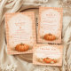 Warm, romantic, and effortlessly seasonal, this fall wedding design features a rich heirloom pumpkin surrounded by soft florals and delicate autumn foliage. A graceful botanical arch frames the wording, creating a balanced and elegant composition with subtle rustic charm. The warm neutral background and burnt orange accents make it perfect for an outdoor autumn celebration, barn wedding, or harvest-inspired event.