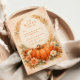 Warm, romantic, and effortlessly seasonal, this fall wedding design features a rich heirloom pumpkin surrounded by soft florals and delicate autumn foliage. A graceful botanical arch frames the wording, creating a balanced and elegant composition with subtle rustic charm. The warm neutral background and burnt orange accents make it perfect for an outdoor autumn celebration, barn wedding, or harvest-inspired event.