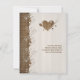 Cette carte de réponse de mariage avec un motif de grain de bois rustique et un filet floral vintage marron et ivoire délavé et de la dentelle comporte un découpage en forme de cœur dans le panneau à l'aspect délavé qui laisse voir le motif du bois en dessous et présente de délicates fleurs et feuilles qui correspondent à l'invitation de mariage illustrée ci-dessous. Elle est présentée ici sur du papier de base. Elle est facilement personnalisable avec vos propres informations. ****VEUILLEZ noter que tout sera imprimé tel que cela apparaît sur votre écran. Zazzle ne modifiera rien pour les fautes de frappe ou les problèmes d'alignement, etc., et je ne le verrai pas une fois que vous l'aurez commandé. Si vous avez besoin d'aide pour la formulation, veuillez m'envoyer un e-mail AVANT de commander. Si vous avez besoin d'autres articles pour rendre votre événement encore plus