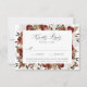 Conçue pour s'harmoniser parfaitement avec notre collection de mariages Rustiques de Bourgogne et d'Ivoire, cette élégante carte florale RSVP présente la date de réponse choisie, le libellé personnalisé d'acceptation et de refus, et les options de choix de repas. Joliment encadrées par des roses d'aquarelle et du feuillage dans des tons riches de bordeaux, d'ivoire, de rouille, de brun, de vert et d'or, ces cartes de réponse florales sont le complément parfait pour les mariages d'automne et d'hiver.