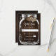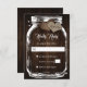 Cartes de mariage RSVP de bocal de mason rustique personnalisées avec un bocal de mason avec deux coeurs de burlap contre un arrière - plan en bois de grange. Deux coeurs de burlap sur un arrière - plan de bois rustique à l'arrière. Personnalisez facilement ces cartes rustiques avec vos détails mariages en ligne. Objets assortis disponibles pour compléter ces cartes RSVP de mariage rustique en pot de mason.