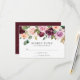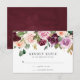 Elégante carte de mariage floral RSVP avec une goutte florale de roses d'aquarelle et de verdure dans les tons de bleu, pêche, violet, bordeaux & vert avec votre date RSVP ci-dessous. Les cartes de réponse du mariage s'inversent à un arrière - plan d'aquarelle bordeaux. Parfait pour le printemps, l'été et le mariage de automne !