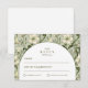 A sophisticated botanical design featuring rich green foliage and soft ivory blooms, framed within a timeless arched layout. The deep, nature-inspired tones bring a sense of depth and refinement, while the clean typography keeps the overall look elevated and effortless.