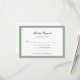 Cette élégante carte de boîtier RSVP présente un design simple et propre. L'arrière - plan est blanc avec la bordure vert sauge et or. Le design est accentué avec de beaux textes de script.
