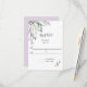 Une carte de réponse de mariage conçue avec des saules et des branches dans des nuances de lilas et de bruyère écossaise. Le texte de la face avant comprend : les détails de réponse, avec un motif de saule sur fond blanc, et le verso dans une nuance correspondante de lilas. Pour personnaliser, insérez simplement votre date de réponse dans notre modèle, en remplaçant le texte d'exemple. Assurez-vous de consulter l'ensemble de la collection de mariage Saules Lilas Tendre, Bruyère Écossaise.