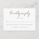 Cette carte RSVP de mariage est aussi tendance et élégante que votre prochaine célébration. La calligraphie contemporaine unique fait une déclaration, tandis que des options de réponse claires et un espace pour le nombre d'invités assurent un processus RSVP lisse. Cette carte de réponse vous permettra d'accueillir vos invités avec enthousiasme et élégance.
