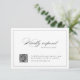 Cette carte RSVP mariage élégante avec code QR présente un design de script classique et un cadre mince en noir et blanc, simple et élégant, idéal pour mariage classique, mariage vintage, mariage formel et autres événements de célébration. Voir toutes les pièces correspondantes de la collection