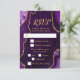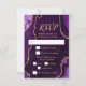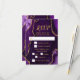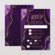 Faites une première impression audacieuse et élégante avec cette carte de réponse en marbre d'agate violet et or, mettant en vedette de riches tons de bijoux, des textures de pierre organique et des accents dorés scintillants parfaits pour les célébrations d'automne et d'hiver. Cette conception comprend des zones de texte personnalisables et des cases à cocher pour la sélection des repas, permettant à vos invités d'indiquer leurs préférences. Les options par défaut sont le bœuf, le poulet ou le végétarien, mais celles-ci peuvent être facilement modifiées pour s'adapter à votre événement. Les teintes d'améthyste profondes associées à des détails en or métallisé créent un look dramatique mais raffiné idéal pour une réponse de mariage, une réponse d'anniversaire ou une réponse de Sweet Sixteen avec une esthétique formelle, moderne ou glamour. Inspiré par les motifs naturels d'agate et de géode, ce design luxueux se coord