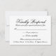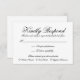 Carte de réponse RSVP de mariage élégante avec un libellé traditionnel dans une belle calligraphie sur le blanc. Ces cartes de réponse RSVP de mariage classique et formel disposent d'un modèle pour vous permettre d'ajouter vos options de menu et sont parfaites pour un mariage de cravate noir.