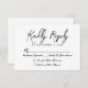 Carte RSVP de mariage minimaliste simple. Cette carte RSVP propre et sobre conviendra parfaitement aux couples à la recherche d'un design moderne et élégant. L'avant ne présente que les détails RSVP dans un style simple écrit à la main, en se concentrant sur le texte essentiel pour un look intemporel. Sur le dos, un ensemble de trois petits coeurs dessinés à la main dans le coin apporte une touche douce et personnelle, offrant un détail subtil mais charmant pour compléter le design. Entièrement personnalisable, cette carte RSVP vous permet d'ajuster le texte et la mise en page en fonction de votre thème mariage. Inclure avec des invitations imprimées, c’est une façon élégante et simple de recueillir les réponses de vos invités.