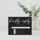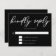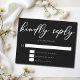 Simplement chic et élégant, notre collection minimaliste de mariage d'hiver comprend une typographie cursive élégante pour votre événement moderne. Une carte de boîtier en gras Kindly Reply qui comprend un script blanc simple sur un arrière - plan noir.