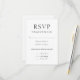 Elégante carte RSVP mariage avec un design simple et minimal. Ce design noir et blanc peut être modifié à n'importe quelle couleur que vous choisissez dans l'outil d'édition de conception. Cette carte de réponse classique est parfaite pour une suite de faire-part de mariage formelle.