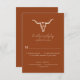 Carte RSVP simple Rustique Mariage Vache Crâne Rust Wedding - Une carte de réponse mariage simple et coordonnée avec typographie moderne et script pour une sensation minimaliste. La carte de réponse présente un crâne de vache rustique de style cowboy en crème de dessert sur un arrière - plan rouille. La carte RSVP fait partie d'une collection et tous les éléments et couleurs peuvent être facilement changés pour être coordonnés avec votre mariage occidental. La carte de réponse comprend le choix du repas.