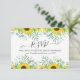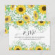 Watercolor Sunflowers Site Mariage RSVP CARD présente un bouquet de tournesols jaune aquarelle, eucalyptus et d'autres feuilles et brindilles sur arrière - plan noir.