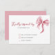 Elégante carte RSVP arc rose avec un design minimaliste. Avec un bel arc rose dessiné à la main et une typographie manuscrite, cette carte RSVP est parfaite pour accompagner vos invitations à la quinceanera, au sweet sixteen et à la douche bébé. Des invitations coordonnées sont disponibles dans mon magasin. Illustré et dessiné par Patricia Alvarez.