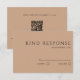 A stylish minimalist tan QR code RSVP card. Featuring elegant black calligraphy script for a kind response and basic details, this sophisticated design suits any spring, summer, winter, or fall wedding.