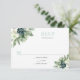 Aquarelle Succulents dans les tons verts avec fleurs blanches. Le dos de cette carte est vert pâle.