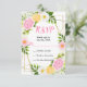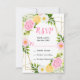 This fun and whimsical wedding rsvp enclosure card features watercolor pink, yellow and white flowers with foliage on a gold geometric frame. The text combines handwritten script and serif fonts for a stylish and modern look. This is perfect for a spring or summer rustic wedding.