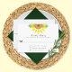 A Sunflower Wedding RSVP which showcases a bright and cheerful yellow watercolor sunflower with lush green leaves, evoking the warmth of a sunny summer day. The back displays the bride and groom’s names in a playful script font.