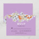 Elégante et chic carte de mariage RSVP avec de belles branches tangerines florissantes. Carte botanique florale aux fleurs et agrumes délicats au printemps. Orange, pastel et lilas. Personnalisez avec votre texte.