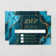 Make a bold and elegant first impression with this teal blue and gold agate marble RSVP card, featuring rich jewel tones, organic stone textures, and shimmering gold accents perfect for fall and winter celebrations. The deep ocean hues paired with metallic gold detailing create a dramatic yet refined look ideal for a wedding RSVP, birthday RSVP, or Sweet Sixteen RSVP with a formal, modern, or glamorous aesthetic. Inspired by natural agate and geode patterns, this luxurious design coordinates beautifully with upscale seasonal events and is fully customizable to match your details, adding timeless sophistication to autumn and winter celebrations alike.