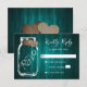Cartons Réponse Teal Rustic Wood Mason Jar Burlap Hearts Wedding