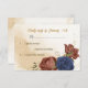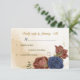 Belle carte de réponse mariage de automne de tonalité terre avec des fleurs en terre cuite et bleu marine avec des feuilles verts. Les détails de la parties scintillant d'or sont simulés. POUR PLUS DE PRODUITS CORRESPONDANTS cliquez sur la collection ci-dessus ou contactez-moi